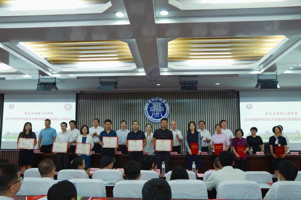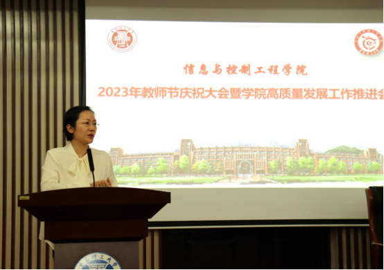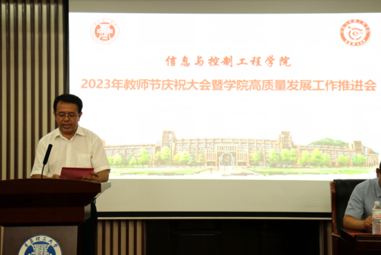 最后,院长田艳兵代表学院向全院广大教师和教育工作者致以节日的问候!向受到表彰的“先进集体”“先进个人”表示热烈的祝贺!向近5年荣休教师、为党的教育事业兢兢业业、无私奉献的老教师,全院教职工致以崇高的敬意!他充分肯定了学院全体教职工多年来的奋斗与付出。在专业认证和一流专业建设上取得了成绩;聚焦一流本科课程建设,扎实推进课程育人工作;科学分析,精准施策,完善政策保障,组建学术团队,凝练研究方向,不断提高学院学科建设水平和教师科研能力;将学科竞赛融入人才培养全过程,完善出台《学科竞赛管理办法》,搭建“金字塔型”大学生创新创业能力培养体系,打通学生在专业学习与实践训练之间的“最后一公里”,形成了教师学生广泛积极参与学科竞赛的良好氛围。