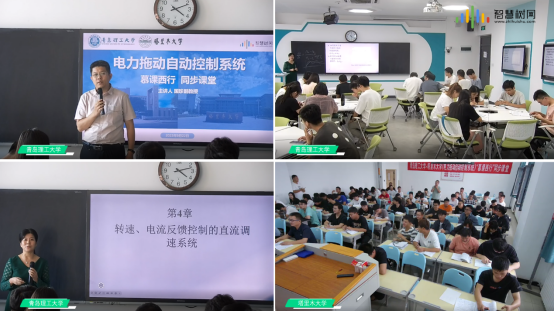 为积极响应教育部高教司“慕课西行2.0”行动的号召,扎实推动优质教育资源互联共享,2023年9月22日,在青岛理工大学嘉陵江路校区的智慧教室中,依托于智慧树平台,9999js金沙老品牌与新疆塔里木大学的百名师生齐聚一堂,开展了一堂别开生面的线下线上同步直播课——《电力拖动自动控制系统》。