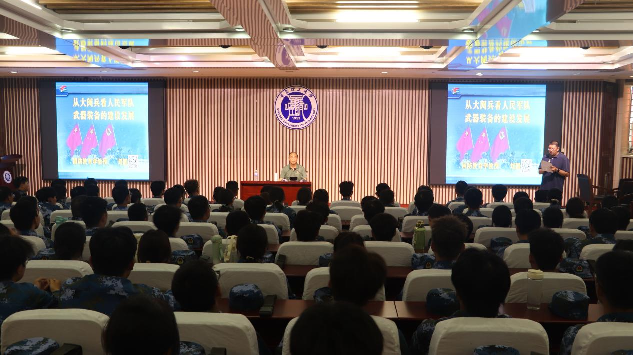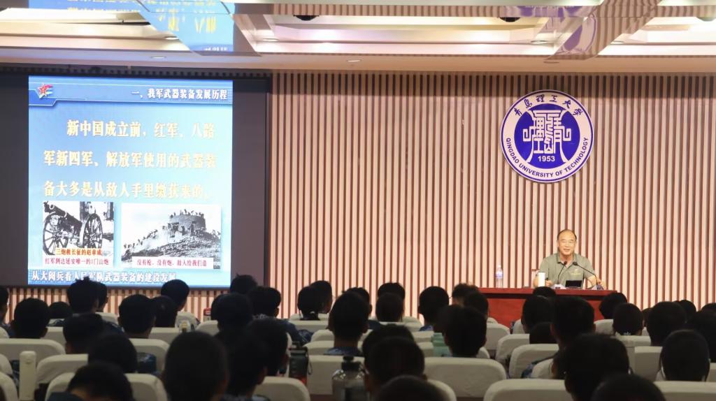 为加强2025级新生国防教育,筑牢关心国防、热爱国防、献身国防的思想根基,9月7日下午,学校武装部特邀国防教育专家刘鹏教授在黄岛校区1号教学楼东报告厅为2025级新生作题为《从大阅兵看人民军队武器装备的建设发展》的专题讲座。讲座由学生处副处长、武装部副部长王栋栋主持,300余名新生在现场听讲。