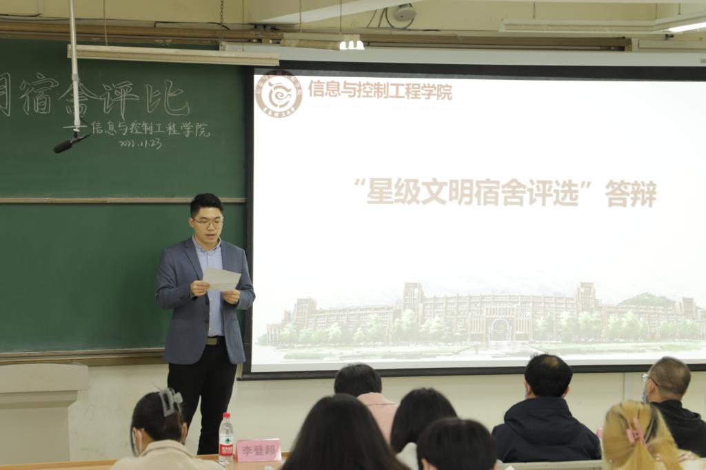 本次活动旨在提升我院学生公寓文化建设水平,调动同学们的积极性,构建健康、和谐、友善的公寓文化氛围,进一步推进学校“一站式”学生社区建设。首先,李登超进行开场发言,他代表学院向积极筹备、参加本次活动,付出辛勤劳动的老师和同学们表示欢迎和问候,并致以美好的祝愿和衷心的感谢。开展本次星级文明宿舍答辩活动可以丰富学生宿舍文化生活并更好的加强我院学生的文明修养,陶冶情操,营造温馨、健康、活泼、文明的生活概念。