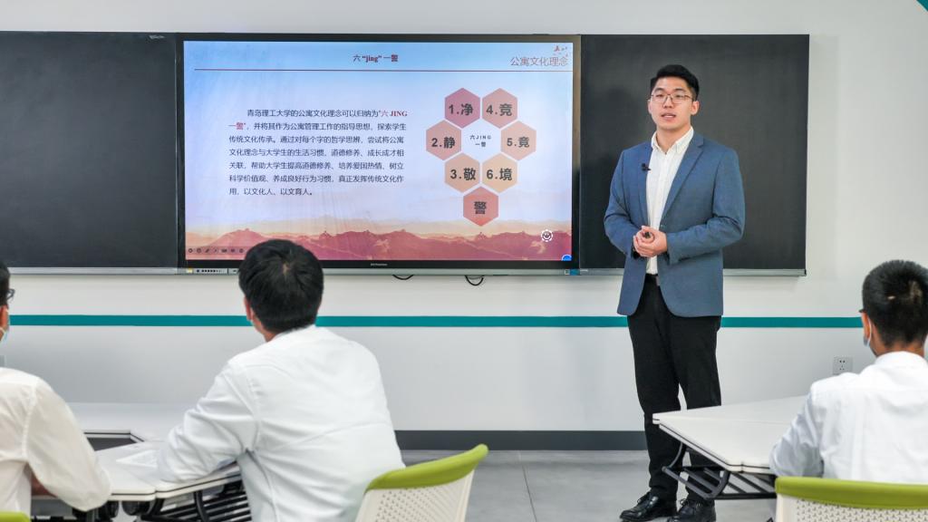 在李登超老师的讲解下,现场同学学习了学生公寓文化的含义,社会主义核心价值观的具体内容以及通过社会主义核心价值观引领公寓文化育人的途径。在活动中,多名同学就青岛理工大学的公寓文化理念“六jing一警”以及如何提升公寓育人文化进行发言,阐述了自己的认识和感悟,现场师生互动效果良好。