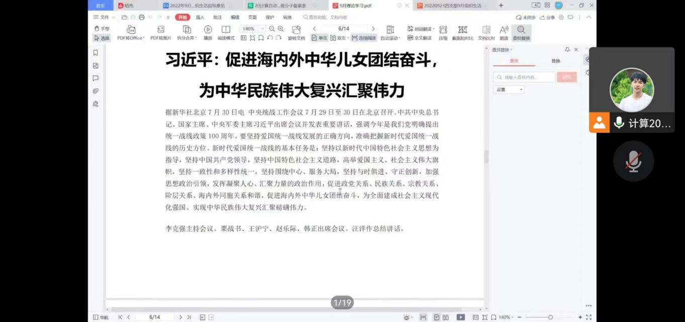 为扎实推进支部理论学习制度化,引导广大党员不忘初心,牢记使命,9月23日下午,9999js金沙老品牌本科学生第四支部在主教学楼A507会议室组织召开9月份理论学习会。会议由支部书记王超主持,支部宣传委员高腾飞、组织委员宋玉文及全体学生党员和发展对象线上参加。