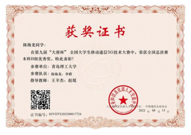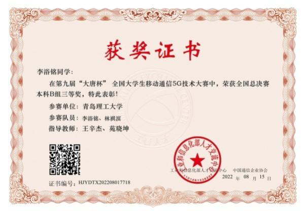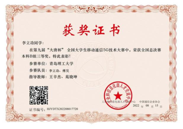 2022年,我校首次参与“大唐杯”全国大学生移动通信5G技术大赛,来自通信工程、电子信息工程、自动化、计算机科学与技术等专业的33支队伍获得省奖27项,其中荣获一等奖的四支队伍与全国1250余支队伍同台竞技,经过激烈争夺,最终获得国家三等奖2项、优秀奖2项。