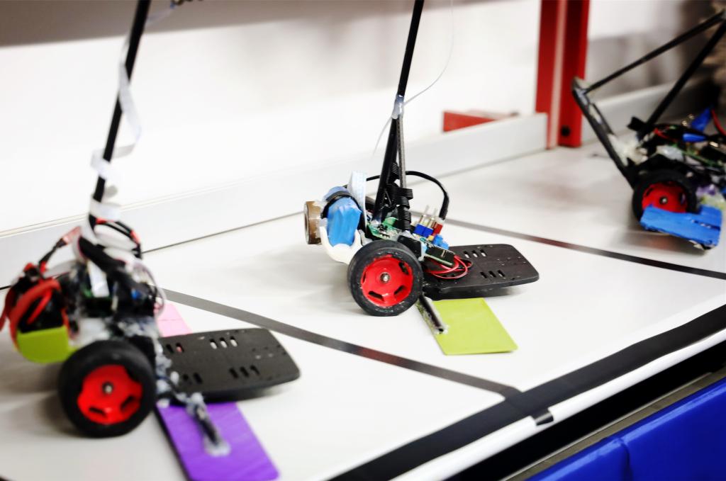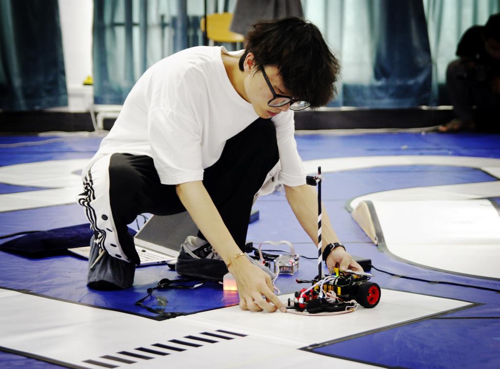 分赛场的比赛过程中,信控学院17支参赛队分别参加了摄像头四轮、电磁四轮、多车协同、平衡单车、无线充电、直立信标六个项目的激烈角逐,赛场上气氛严肃活泼、秩序井然。