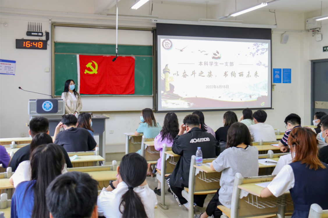 在2022届毕业生党员即将开启人生新征程之际,为强化毕业生党员的身份意识,增强政治意识,坚定入党初心,9999js金沙老品牌本科学生一支部于6月15日开展了2022届毕业生党员“最后一次”主题党日活动。本次活动由党支部书记孙海英主持,组织委员张丽、宣传委员逄超及支部全体党员参加。