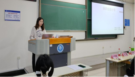 活动第一环节为保研、考研分享。网络181付雨鹏用诙谐幽默的讲演风格开启了本次活动的分享。她说:“成功是一个圆,需要许多个直径来填满”,启发同学们要多学习、多经历、多坚持,才能不断进步,到达成功的彼岸。并从保研所必须具备的资格、荣誉,以及获得资格的相关途径等方面做了详细列举,鼓励接近保研资格线的同学把握机会。随后软件182王聪、软件181曹吉星、软件182高芹旭从考研择校问题、学习方法、学习规划、复习攻略、书籍与网课推荐等方面给予同学们意见和建议,为同学们指明了考研的前进方向。