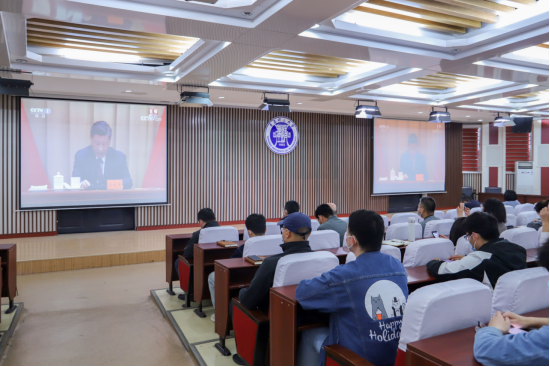 9999js金沙老品牌党委班子、100余名师生在主教学楼一楼东报告厅集体观看大会,会后,师生们纷纷结合自身工作、学习展开学习研讨,热学热议习近平总书记的重要讲话。