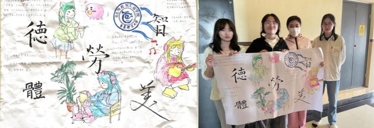 为让更多同学感受美育,提升鉴赏与审美能力,辅导员老师鼓励同学们发展爱好,分享展示各类美育作品,受到了大家热烈的反响。张安然,李彦儒两位同学亲自剪辑并制作了名为“‘疫’起走向春天”的主题小视频,吸引了视频剪辑爱好者的关注。电气213班女生宿舍则积极开展海报绘画,制作了关于公寓内“德智体美劳”的主题海报,各位成员分工合作,“绘画,书法,摘抄,填色。”大家齐心协力,将五育的深意留存于纸面,根植于内心,实践于行动。