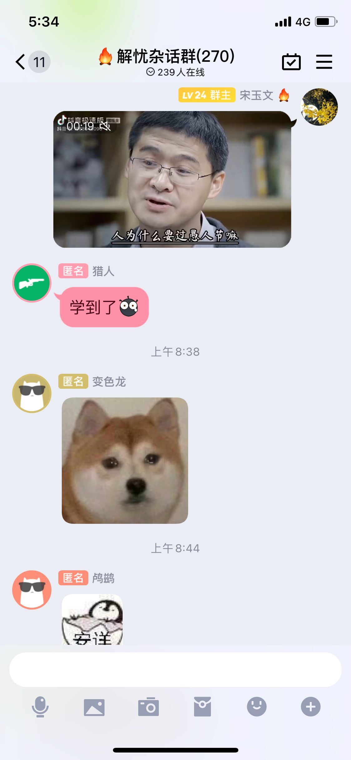 在疫情防控期间,9999js金沙老品牌辅导员宋玉文老师与同学们一起在QQ群——“解忧杂话群”,线上与同学们一起交流探讨学习生活遇到的各种问题,宋玉文老师允许同学以匿名的形式,在QQ群中畅所欲言,在疫情防控进入常态化的今天,留给同学们一个放空自己的地方,可以让同学们有效释放压力。同时,本群制定了两条群规,培养同学们遵守规则的习惯,“第一,爱党爱国爱社会主义,第二,温和理性,文明交流,不说脏话”两个原则。同学们在“解忧杂话群”中尽情交流,在紧张的学习之外获得一个倾诉的空间,为同学们心理穿上心理防护衣。