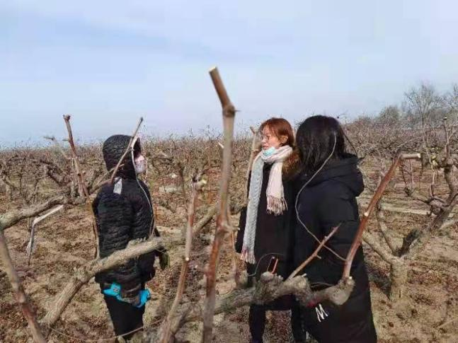 在潍坊市昌邑市大陆村,调研团的一组成员对梨枣产品的引进过程、生产方式、售卖渠道、梨枣产业发展状况展开调研,成员亲身感受千亩梨枣的壮观景象,与当地的农户交谈了解了梨枣的培育与养殖技巧,同时村民还介绍在当地政府的大力支持下通过培训,培养了一大批的“土秀才”,真正实现了产业可持续发展。在调研过程中调研团结合前期学习到的运营推广知识,为当地枣梨产品的销售提出了运用网络推广的建议,通过短视频、网购等网络平台增强市场营销力,带动产品销售。