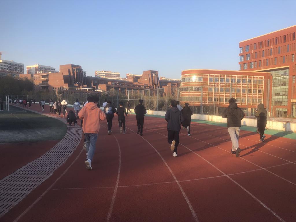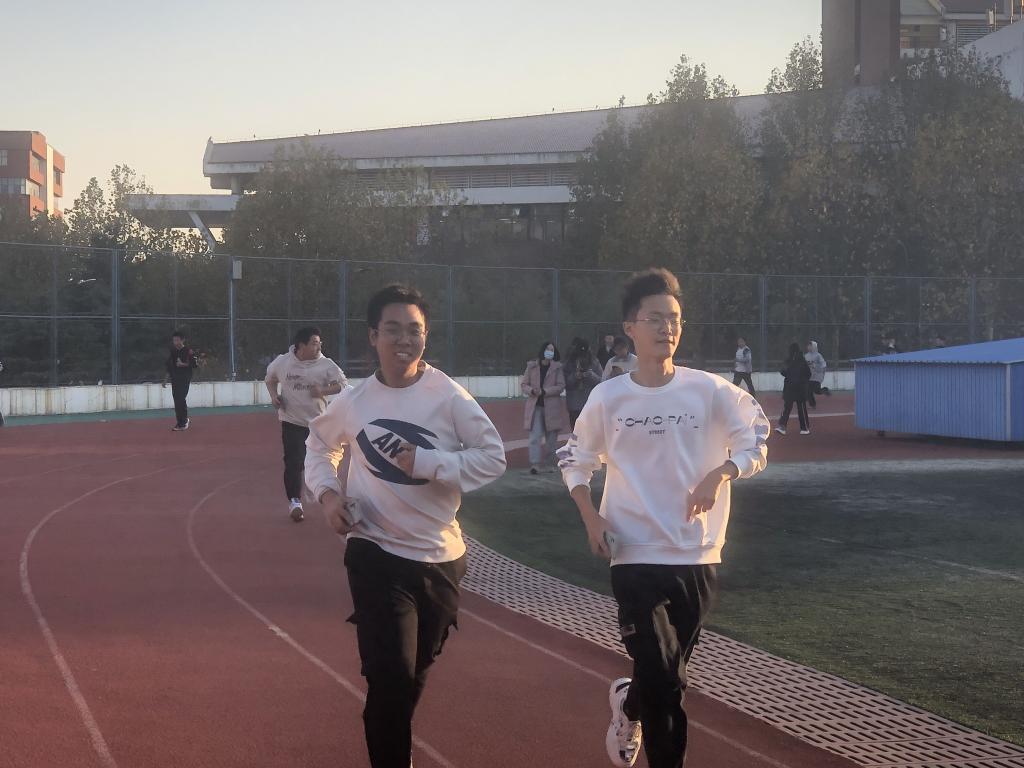 下午四点整,主席台旁边齐立着已经集结完毕的同学们,新生辅导员宋玉文老师叮嘱大家跑步要注意的事项,量力而为,安全第一,并告诉部分因早操、晚自习迟到或宿舍卫生不达标的同学:成年人要为自己的行为及后果负责。同学们奋勇争先,沿着操场跑道奔跑而去,师生一起跑步前进,共同感受阳光与运动所带来的快乐。宁静的冬日,阳光照在身上、脸上,同学们额头沁出微微的汗水,青春是校园最美丽的风景。