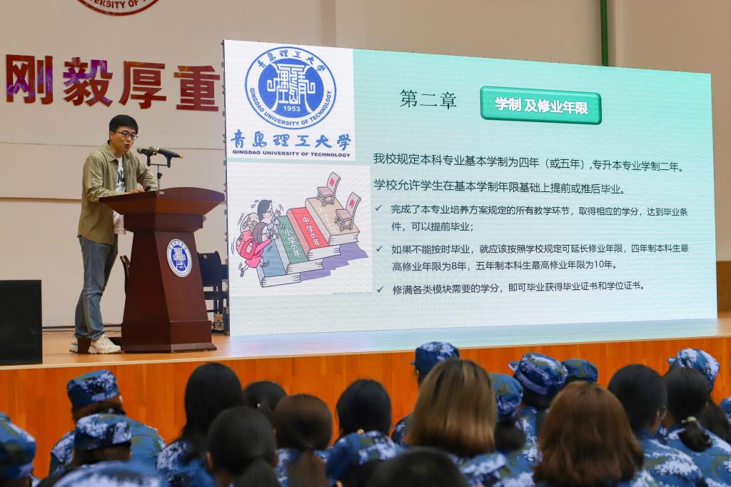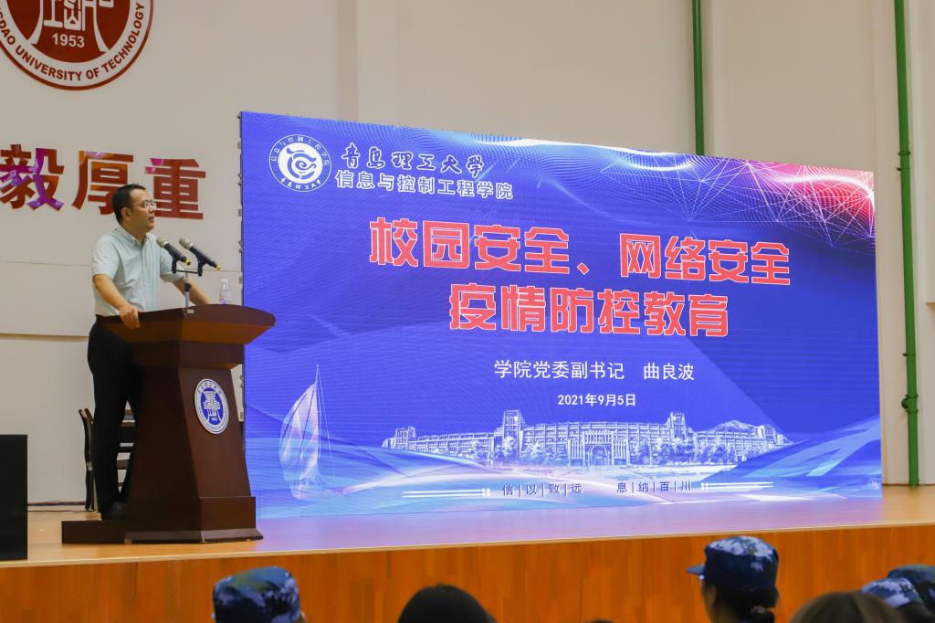 大会上,党委书记高洁首先代表学院对2021级新生的到来表示热烈欢迎,并就校史校情、院史院情和理工精神传统教育做了介绍。她对新生们提出了殷切希望,她希望同学们可以秉承学院“信以致远、息纳百川”的院训,做一个严谨、勤奋、求实、创新的信控学子。教务处教务科科长刘伟老师对学籍、选课、考试、辅修以及转专业的相关规定做了详细讲解,他建议同学们从现在开始认真思考,明确自己将来的发展方向以及未来四年的奋斗目标,提早做好职业生涯规划,努力学习。辅导员刘荣稳老师就校规校纪、素质评价、资困助学的相关规定进行了介绍,提醒新生要严于律己,同时可以结合自身的实际情况,享受惠民政策。学生处心理健康教育中心薛腾飞老师对新生进行了心理健康、生命安全和感恩责任教育,还带领全体新生做了感恩手势舞,帮助同学们舒展身心。学院党委副书记曲良波着重对新生进行了校园安全、网络安全和传染病防控教育。