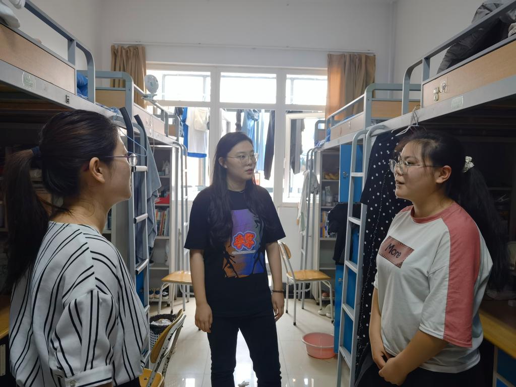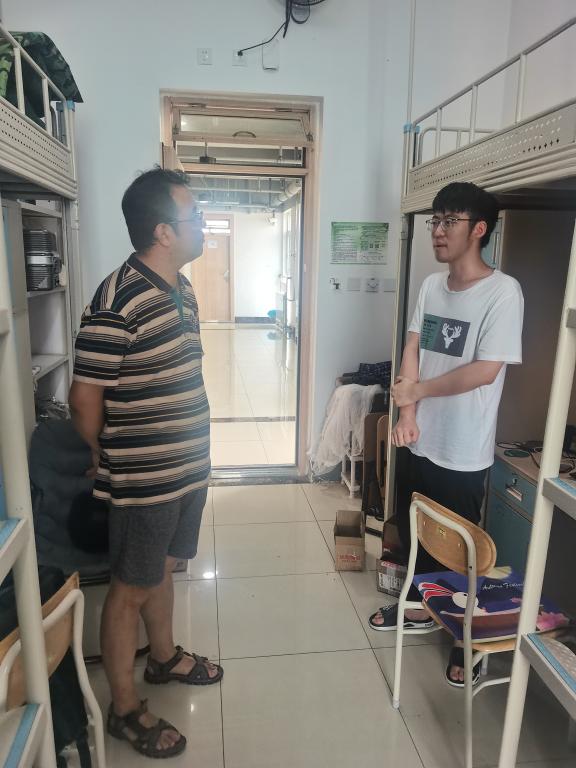 为进一步落实暑假期间学生安全管理,增强学生的疫情防控意识,防范各类安全事故发生,8月2日,9999js金沙老品牌党委副书记曲良波带领各年级辅导员深入学生宿舍开展安全检查和走访工作,及时排查宿舍安全隐患,解决学生实际问题。