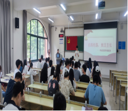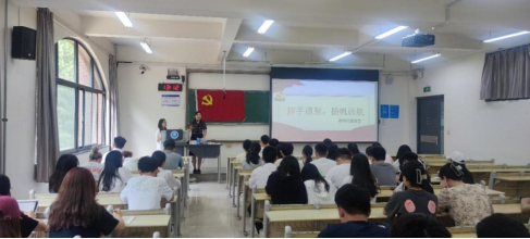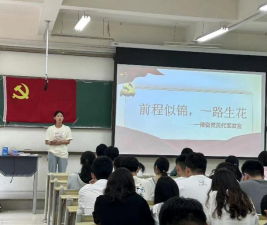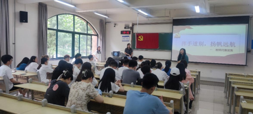 挥手道别,扬帆远航。党支部书记冯雪给全体党员上了以“薪火相传,砥砺前行”为主题的微党课。她希望毕业生党员要不忘初心,时刻铭记党员光荣使命,起到积极模范带头作用,在未来的学习和工作岗位中脚踏实地、锐意进取、砥砺前行。毕业生党员教师贾戈诠释了“毕业生党员欢送会”不仅是“送”更是“带”,毕业生党员要继续为学弟学妹做好带头和表率。她嘱咐毕业生党员要铭记大学时光的美好与拼搏,爱党报国、敬业奉献,服务社会,奉献社会,为祖国建设奉献青春力量。