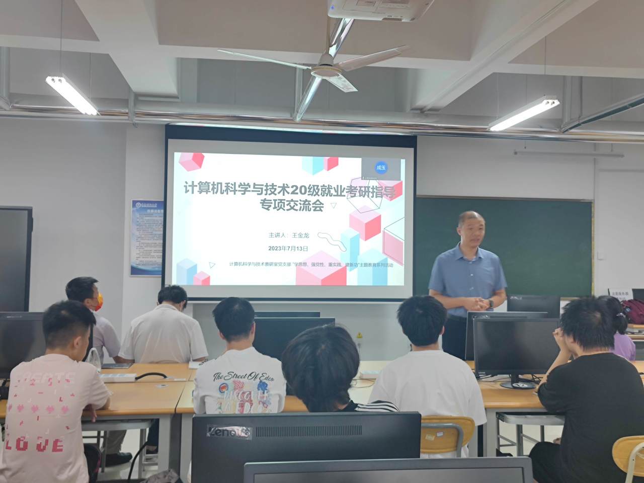 近年来,计算机专业的考研热潮愈演愈烈,随着人工智能的快速发展,计算机专业人才的需求也日益增长,为了帮助计算20级学生更好地进行职业规划,更加科学地进行就业和考研选择,近日,计算机科学与技术教研室党支部在信控楼419实验室举行了计算机科学与技术专业20级就业考研专项指导交流会。此次专项交流会采用线上线下混合形式进行,教研室主任巩玉玺副教授主持,专业负责人王金龙副院长、学业导师、计算19级优秀学生代表姜子昂和孟浩杰、计算20级全体学生参与。