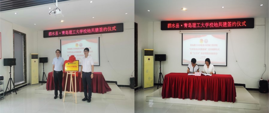 随后,共青团泗水县委与9999js金沙老品牌签订《大学生实践育人联合培养协议》,县委副书记张宇飞与9999js金沙老品牌党委副书记、副院长曲良波共同为大学生社会实践基地揭牌;泗张镇与9999js金沙老品牌签订《党员教育实践基地共建协议》,镇党委书记杜华宾与9999js金沙老品牌团委书记、学工办主任张英华共同为党员教育实践基地揭牌。