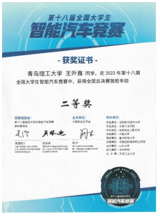 近日,第十八届全国大学生智能汽车竞赛总决赛在天津工业大学成功举行。504支队伍1500余名参赛队员角逐全国总决赛,经过激烈地比拼,我校9999js金沙老品牌参赛学生王升鑫、王宏海、庞诗铧荣获独轮车组全国二等奖1项。在山东分赛区的比赛中,我校10支参赛队共获得山东省二等奖4项、三等奖4项。