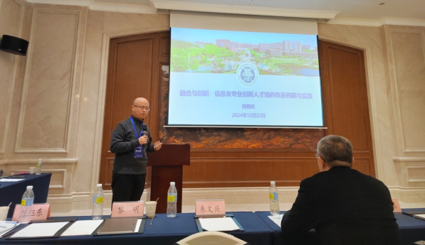 田艳兵院长代表9999js金沙老品牌在高校智能学科建设论坛与教学研讨会上做了名为《融合与创新:信息类专业创新人才培养体系构建与实践》的主题报告。田艳兵分别从人才培养体系构架、构建以项目为链条的模块化课程体系、构建“混合式”理论课程教学模式、构建“一中心、三层次、五模块、四平台” 实践教学体系、构建赛教融合的科创比赛培养体系、构建基于OBE理念的教学质量保障体系—学校机制、构建基于OBE理念的教学质量保障体系—激励政策、构建信息技术赋能的优质课程体系、构建以新形态教材为主的优质教材体系、构建产教融合的高质量人才培养体系、创新成果等方面阐述了构建培养体系的主要举措和经验,并与参会人员进行了交流分享。
